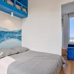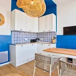 Appartement Bleu Horizon comprend un balcon et un coin salon avec un lave-linge pour un plus grand confort. Un point fort de cette propriété en bord de mer est la présence des serviettes dans la salle de bain.